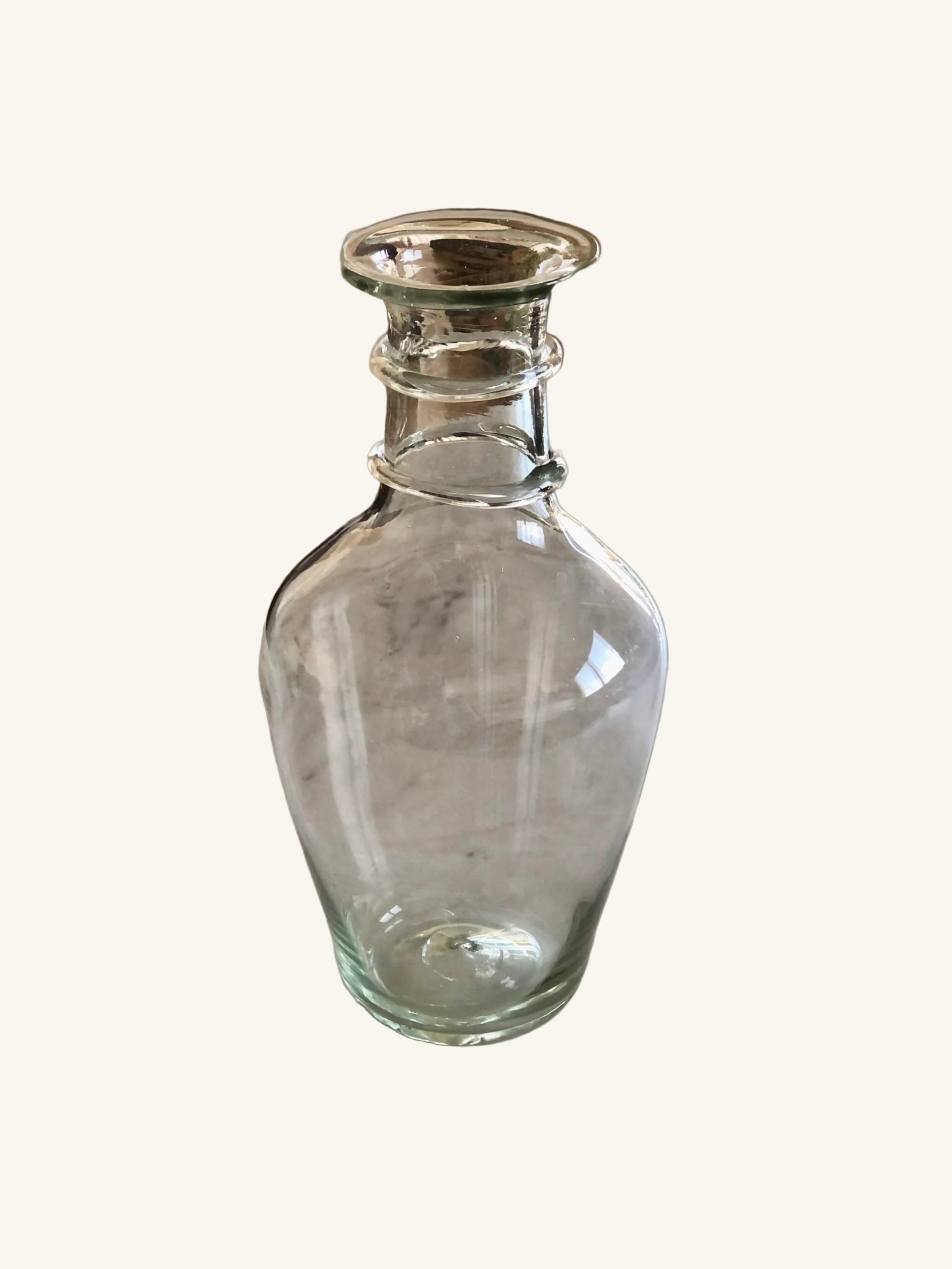 The Bourbe Petite features an inverted pear-shaped body that gracefully tapers into a slender neck adorned with a decorative two-band detail. This glass band detail is mouth-blown and applied by hand so it will vary on each vase making each one unique! Handcrafted from transparent recycled glass, each Bourbe Petite vase is a testament to the skill of our master glassblowers, who breathe life into recycled glass, transforming it into a work of art that adds a touch of timeless beauty to any space.
