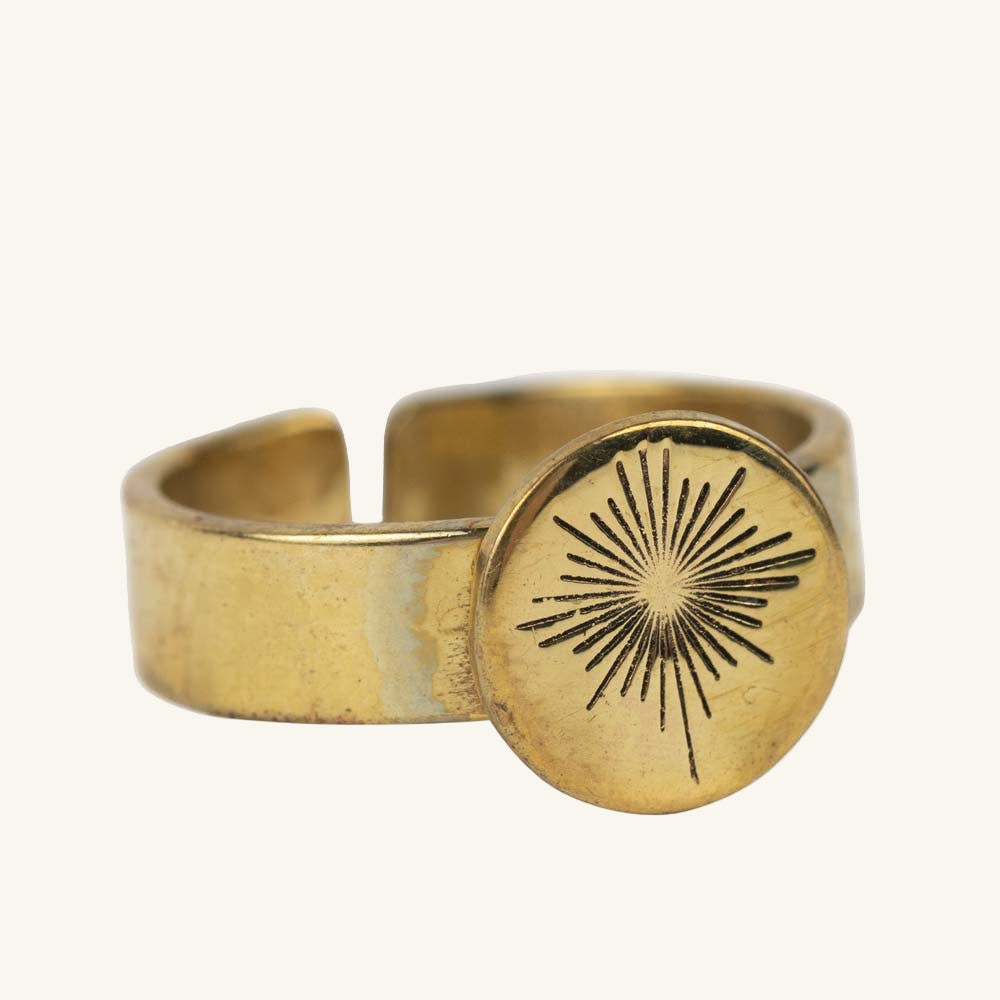 Carry the North Star’s light wherever you go. The Guiding Star Ring features a timeless design crafted from brass reclaimed from bomb casings gathered in Cambodia. Skilled artisans from the Rajana group repurpose these fragments into meaningful emblems of peace and hope. Made of recycled brass, the ring measures about 0.65" in diameter and is adjustable for a comfortable fit. Handcrafted in Cambodia with expert care.
