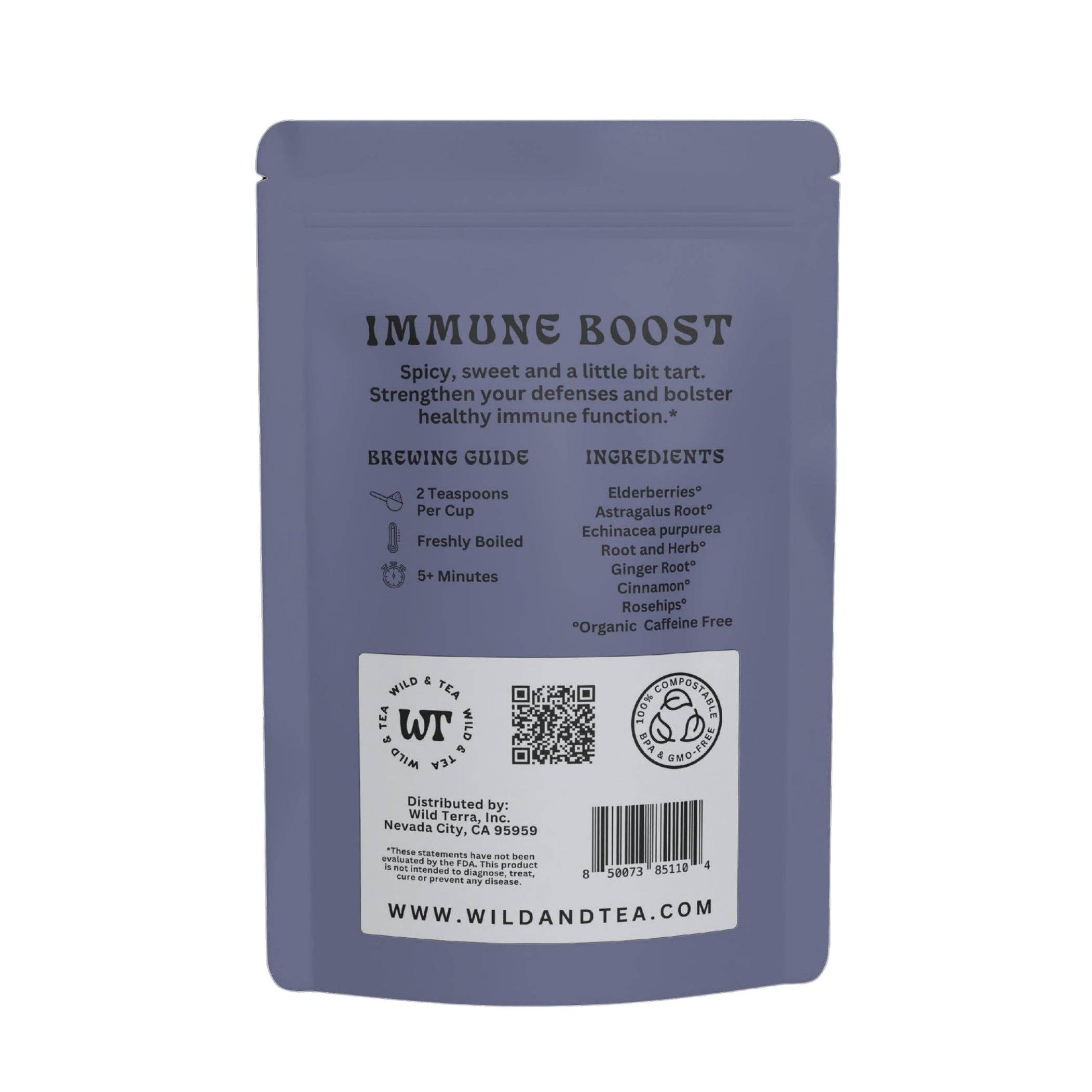 Organic Ingredients- Elderberries, astragalus root, Echinacea purpurea root and herb, ginger, cinnamon and rosehips. Caffeine free