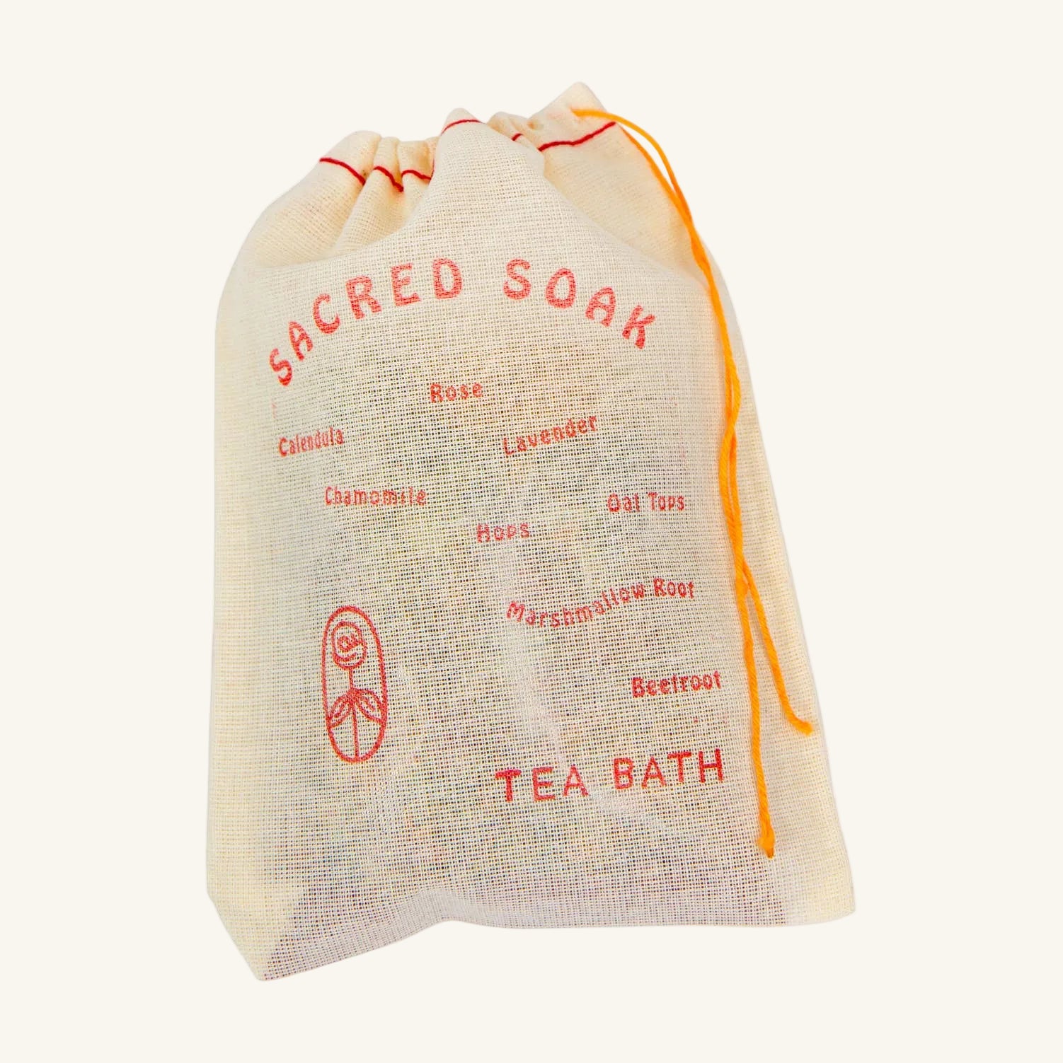 The Sacred Soak is a calming tea bath for the body made from soothing herbs that balance out our busy lives. Beetroot is added to the blend turning bathwater a deep ruby color, to ignite the root chakra and our connection to Mother Earth.