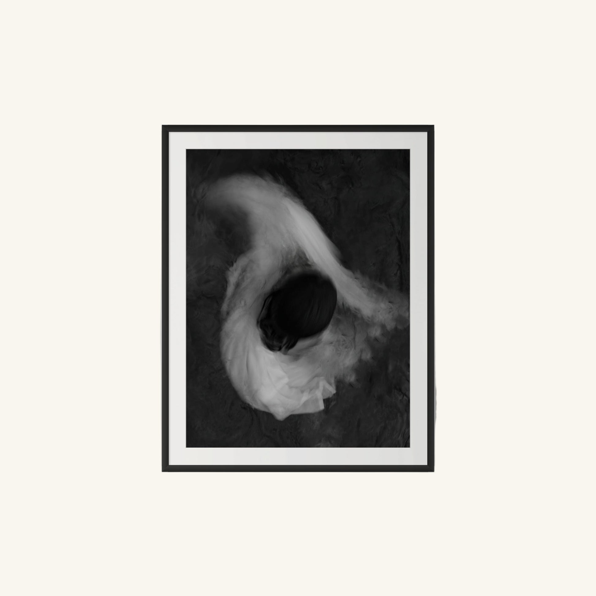 This collection of photo-based works by Gideon Tsang reflects his ongoing interest in pushing photography into different mediums. In Effloresce, he references charcoal drawings—with their dark chalky gradients and subtle marks—collaborating with the human form, water, textiles, and flowers to express the complex experience of coming alive. The speechless full moon is inspired by Rumi’s poem, Quietness - Inside this new love, die.