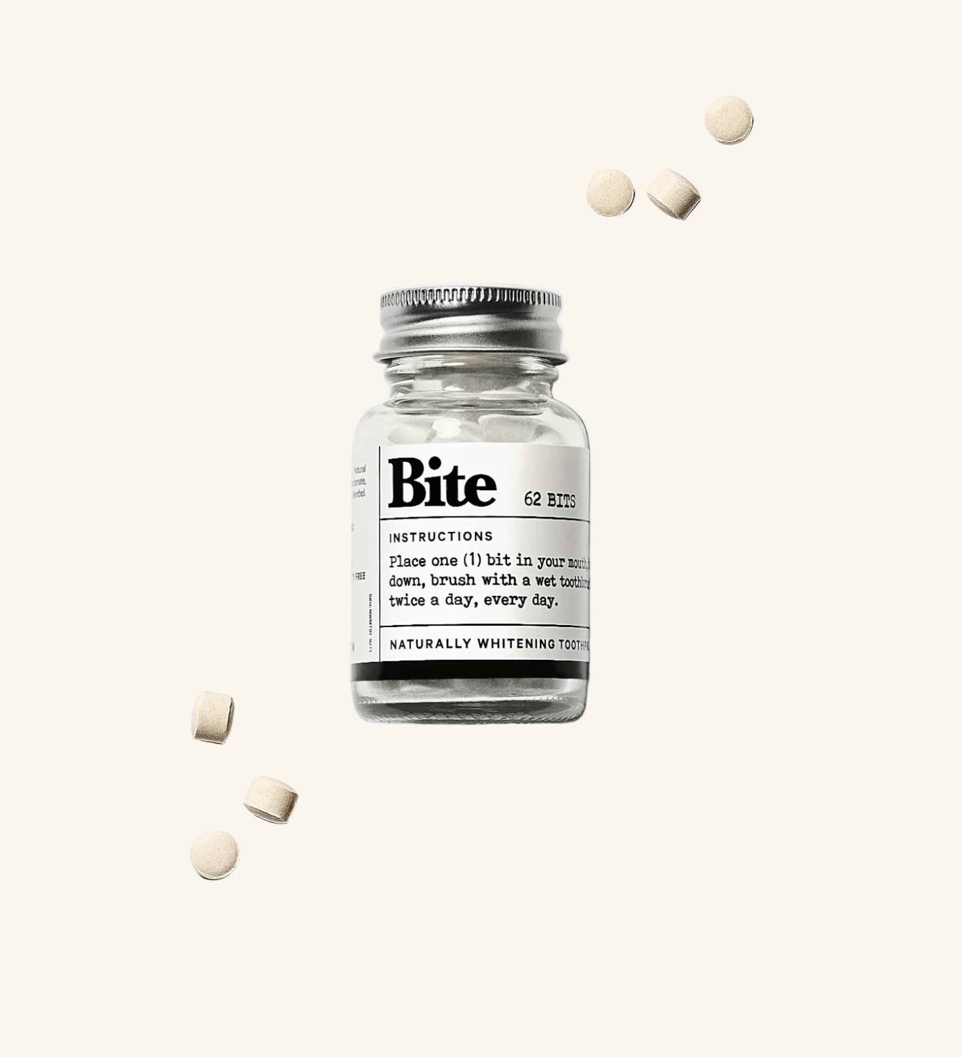 Bite Toothpaste Bits are made with clean, vegan-friendly ingredients like coconut oil, xylitol, and nano-hydroxyapatite, a non-toxic fluoride alternative that helps fight sensitivity and remineralize tooth enamel.